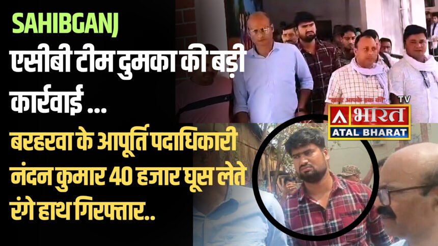 बरहरवा/साहेबगंज :- दुमका एसीबी की टीम ने बड़ी कार्रवाई करते हुए बरहरवा प्रखंड के प्रखंड आपूर्ति पदाधिकारी नंदन कुमार को 40 हजार रुपये घूस लेते रंगे हाथ गिरफ्तार कर लिया। बुधवार को हुई इस कार्रवाई में एसीबी टीम ने आरोपी अधिकारी को मौके से ही दबोच लिया। जानकारी के अनुसार, एसीबी को घूसखोरी की शिकायत मिली थी, जिसके सत्यापन के बाद जाल बिछाकर कार्रवाई की गई। जैसे ही नंदन कुमार ने रिश्वत की रकम ली, टीम ने उन्हें रंगे हाथ पकड़ लिया और अपने साथ दुमका ले गई, जहां आगे की कानूनी प्रक्रिया जारी है। गौरतलब है कि कुछ दिन…